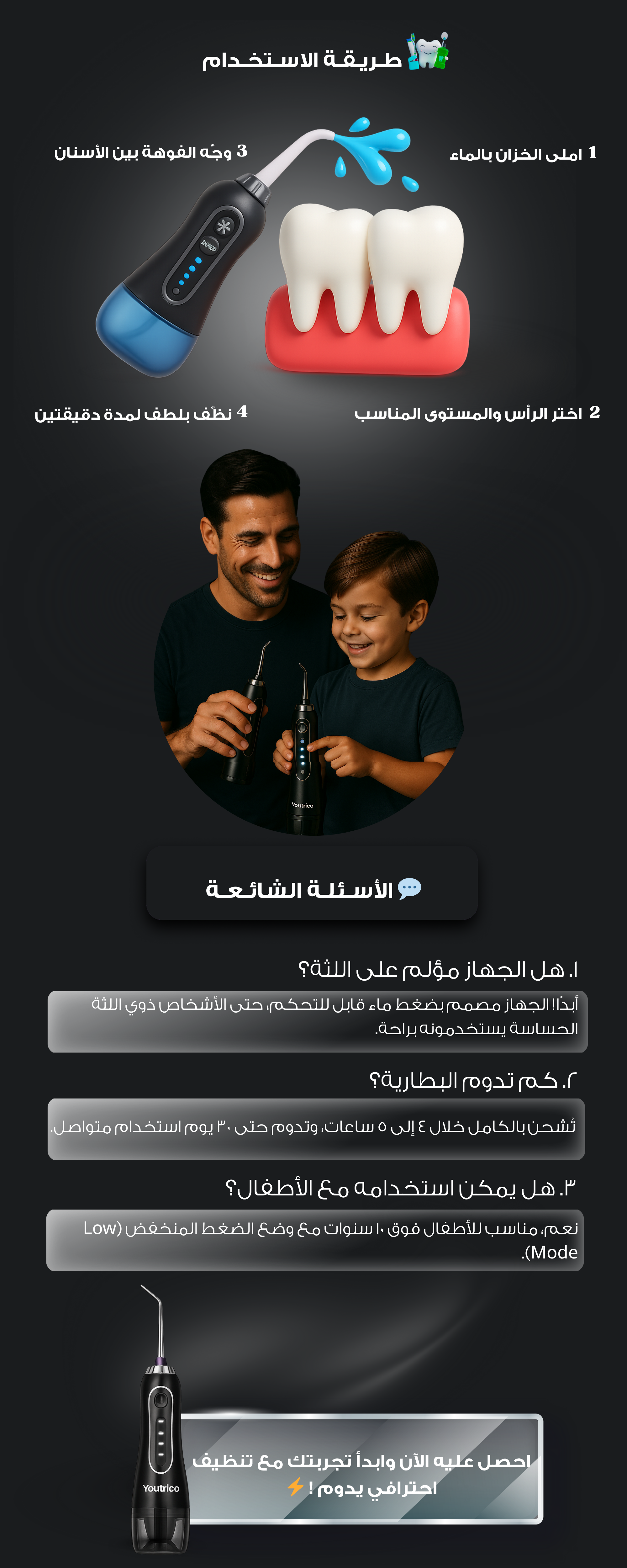 جهاز تنظيف الأسنان بالماء اللاسلكي Youtrico